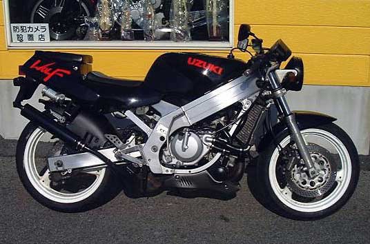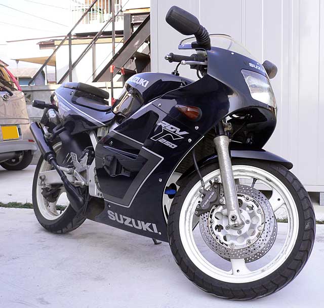 | コメント | WOLF外装の88SPをヤフオクでゲットしてからこつこつとガンマに戻してきました。なので、カラーリングはSPではなくてたまたま見つかった88シックカラー、センターのカウルは白(結構気に入っている)。リヤのウインカーはWOLFのものがついています。細かいところがいろいろとWOLFと混ざっていて突っ込みどころ満載です。小遣いでやりくりしているため、あまりお金がかけられません。とにかく現状維持が先決です。今後はクロスミッションで苦労しているので、スプロケット交換でローギヤード化して鬼クロスにしようと企み中。最高速なんていらないし・・・(負け惜しみ)。 | |